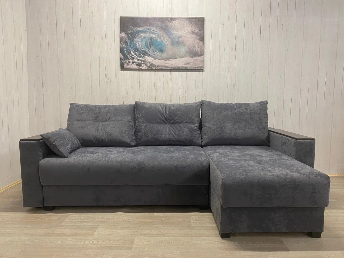 - Диван Комфорт-3 ПБ+МДФ Тик-Так велюр Sensey steel grey