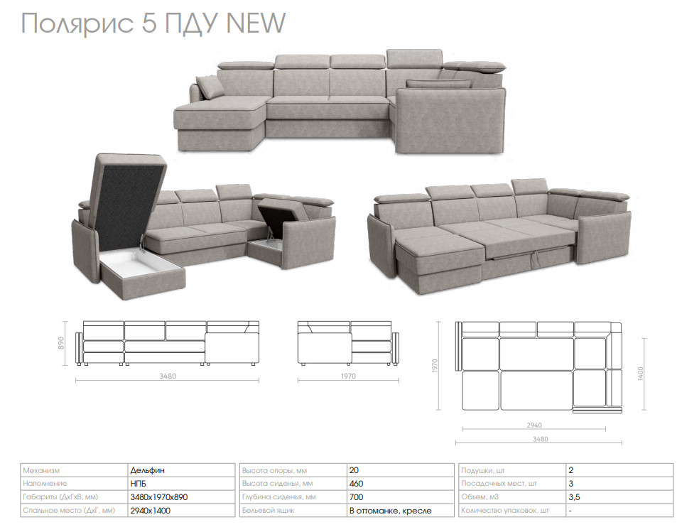 Диван Полярис 5 ПДУ NEW