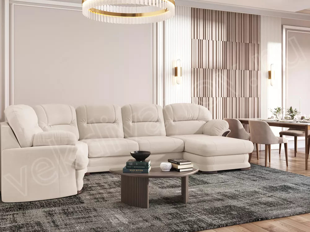 - Диван угловой большой П-образный Квин 6 без механизма Ultra Sand