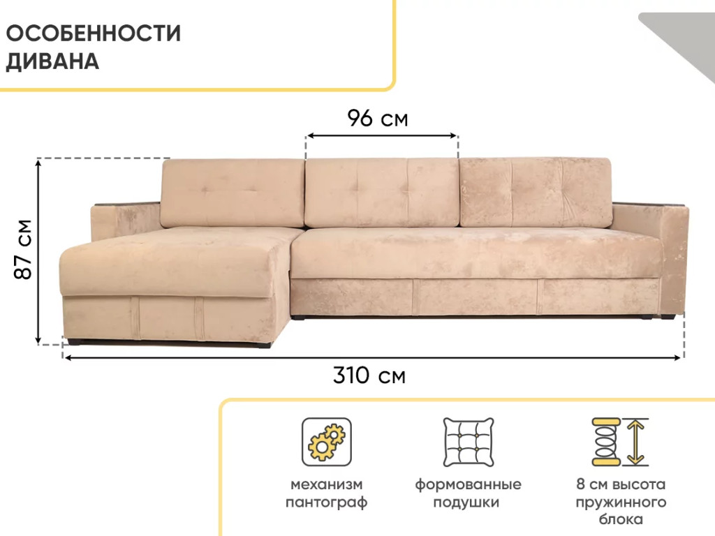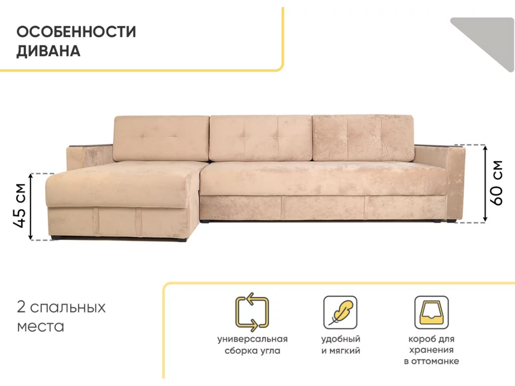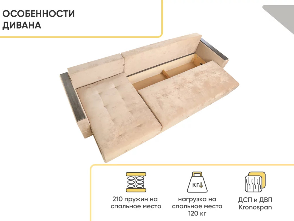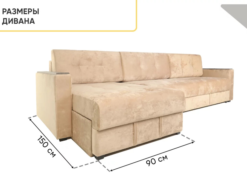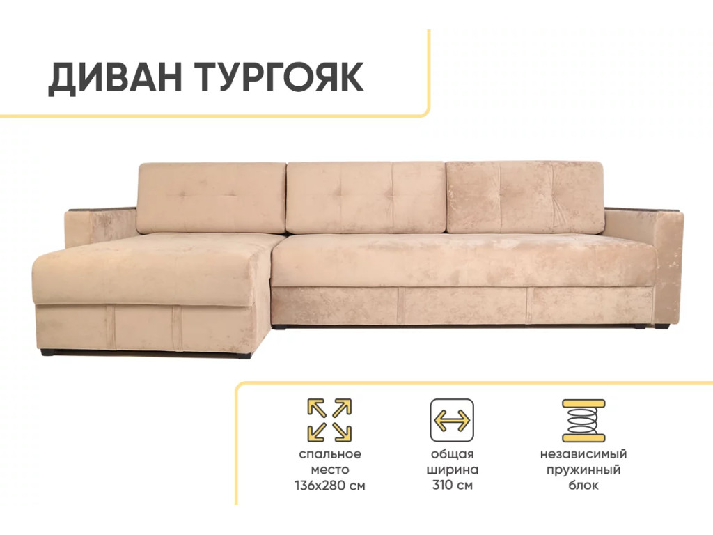 - Диван угловой Тургояк Бежевый Ocean 130
