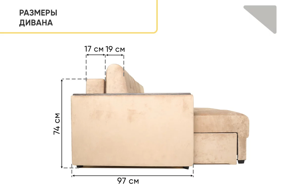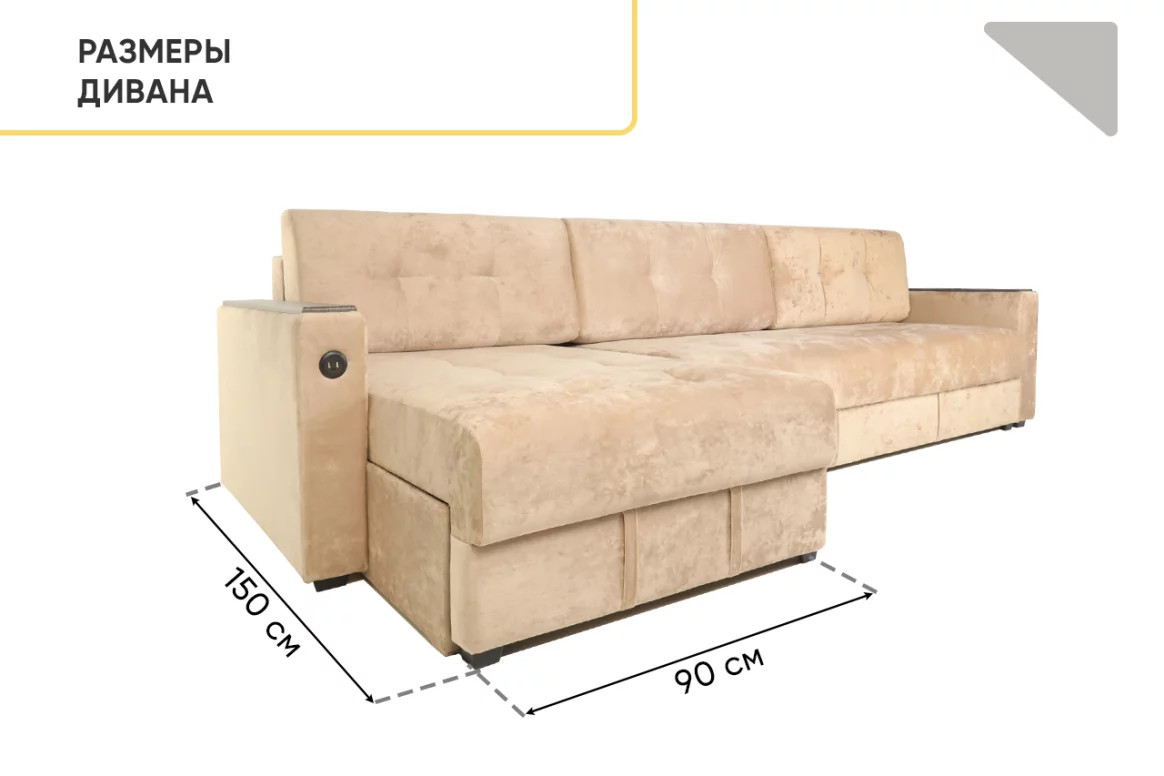 - Диван угловой Тургояк c USB розеткой Бежевый Ocean 130