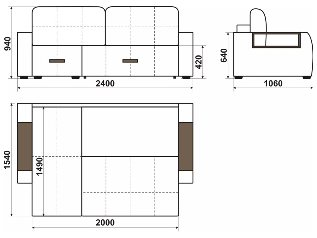Размеры дивана (мм): 2400*1060*940