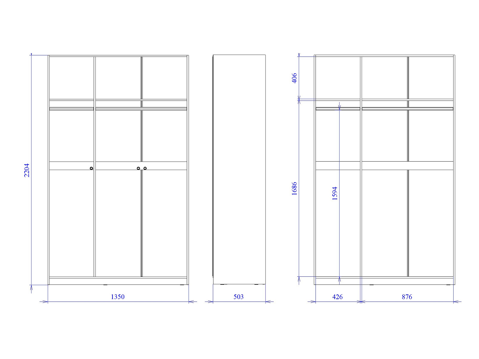 - Высота (мм) 2204