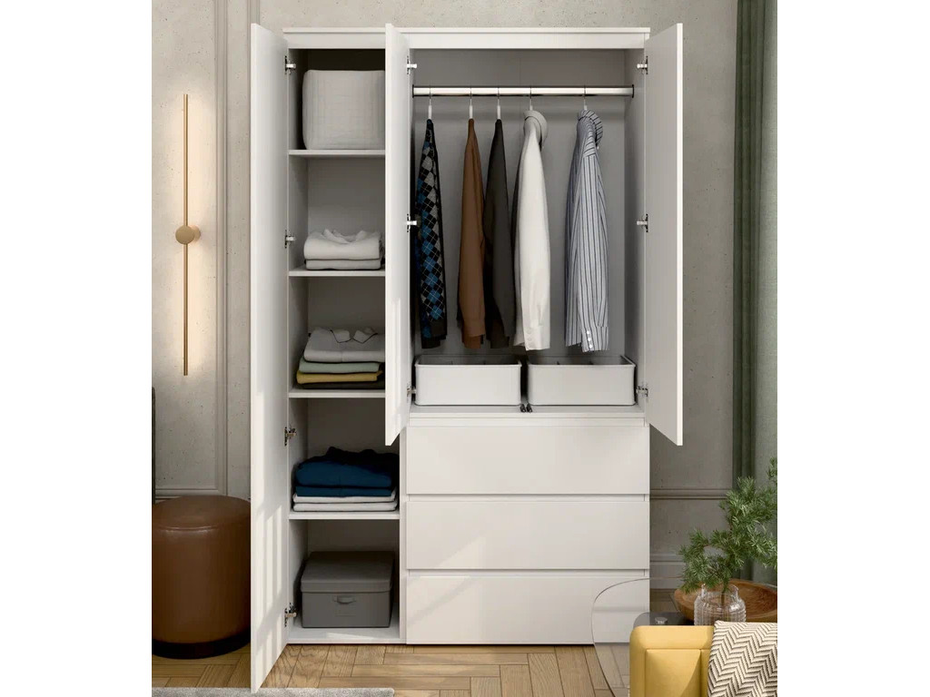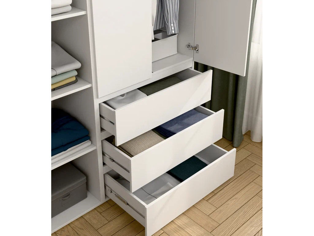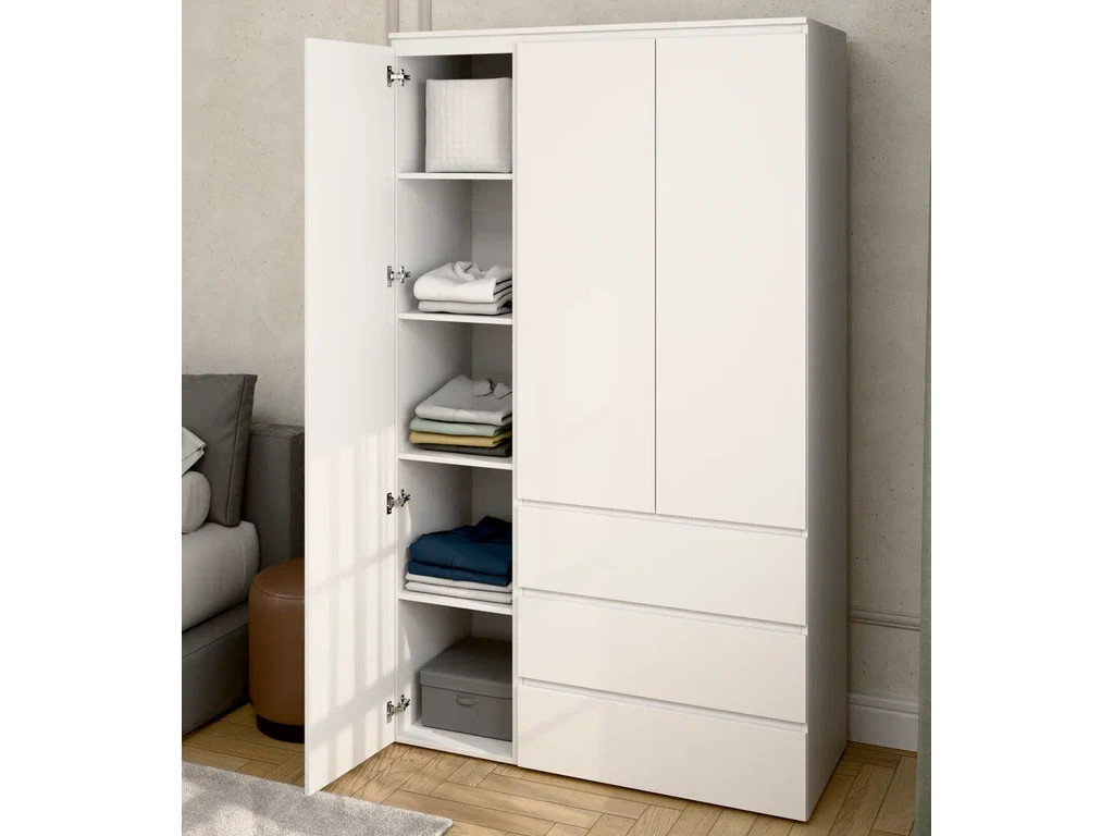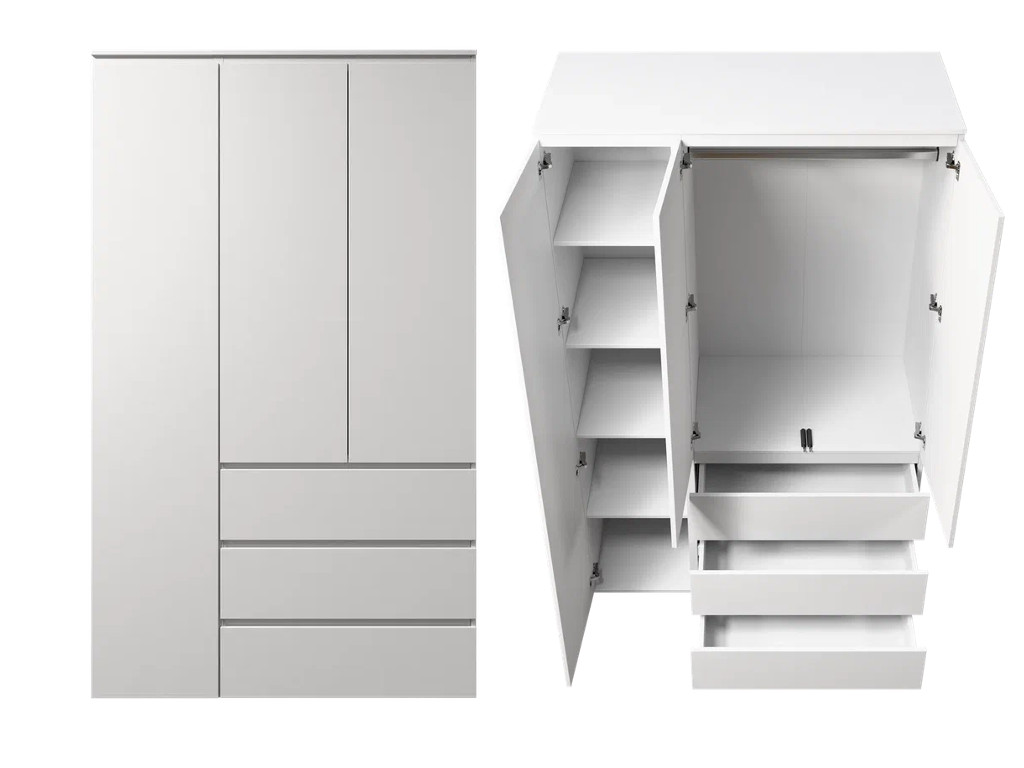 - Шкаф 3-хстворчатый с 3-мя ящиками Прайм белый