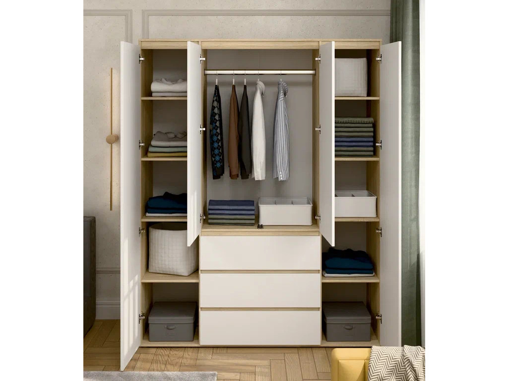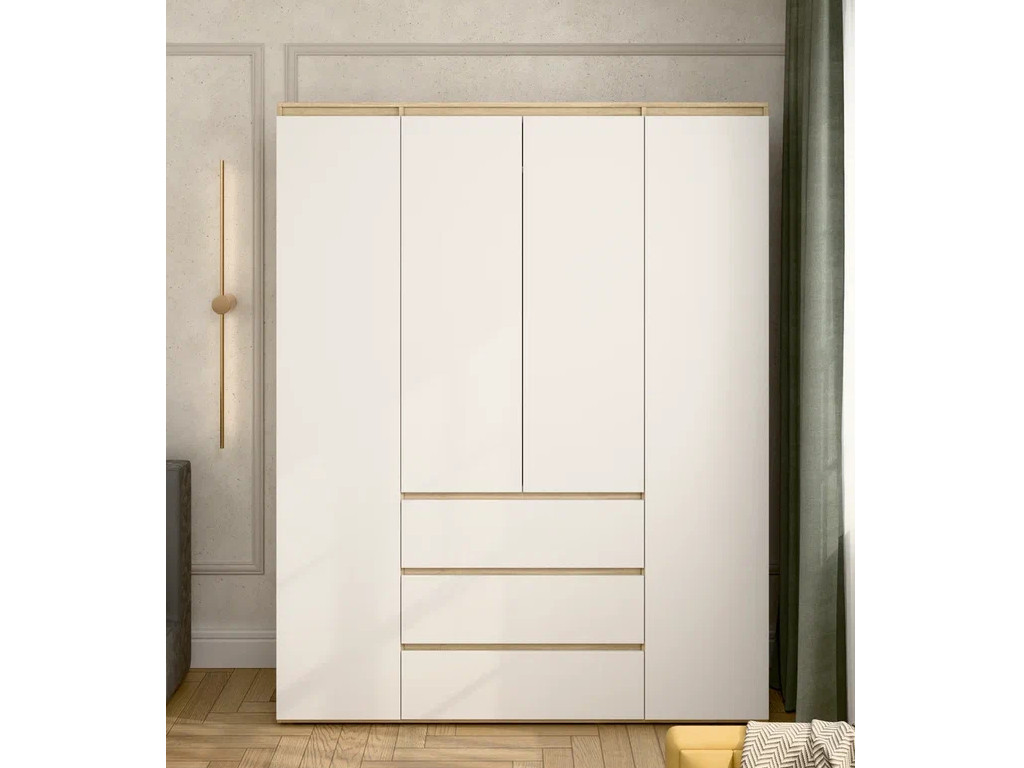 - Шкаф 4-хстворчатый с 3-мя ящиками Прайм сонома/белый