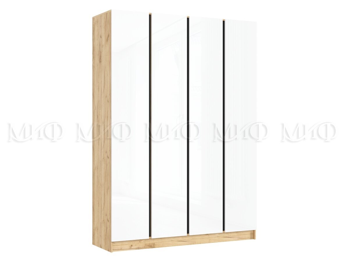 Шкаф четырехстворчатый Келвин (1600) Белый Глянец, Дуб Крафт-вставка черная