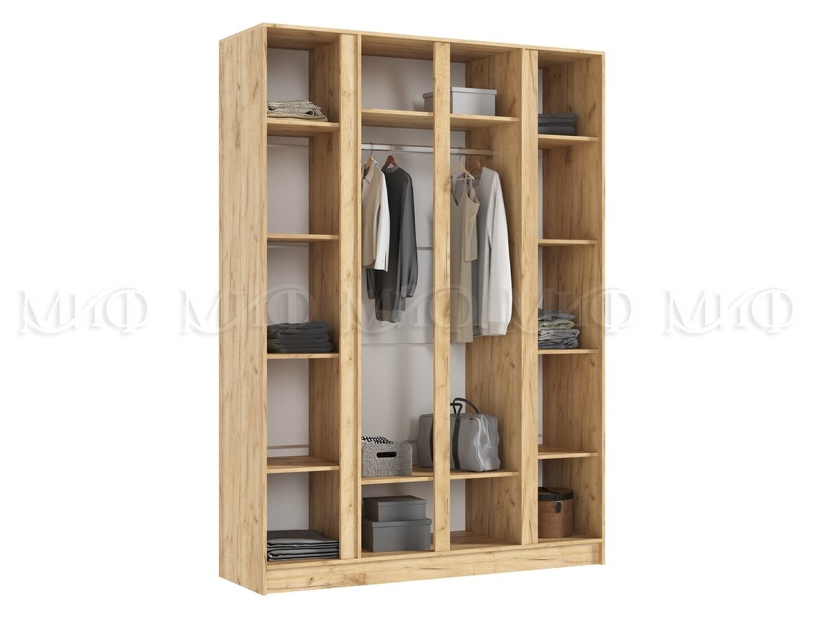 Шкаф четырехстворчатый Келвин (1600) Белый Глянец, Дуб Крафт-вставка дуб крафт