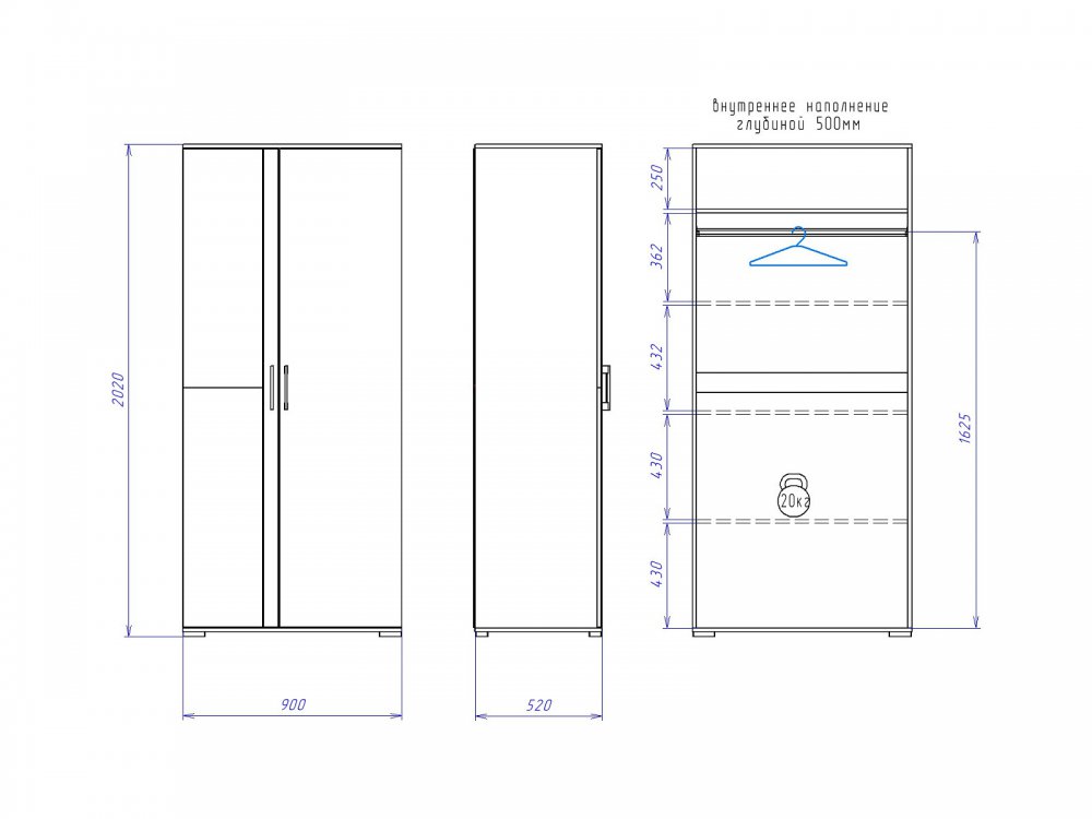 Размер ШхГхВ: 900*523*2020 мм