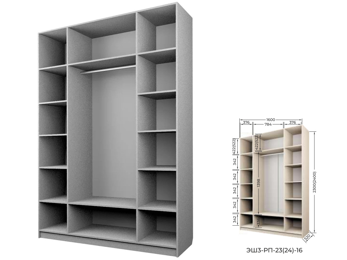 Комплект: ЭШ3-РП-24-16, Шкаф для Одежды + четыре ЗС-24,Зеркало для шкафов ЭШ 2400 мм