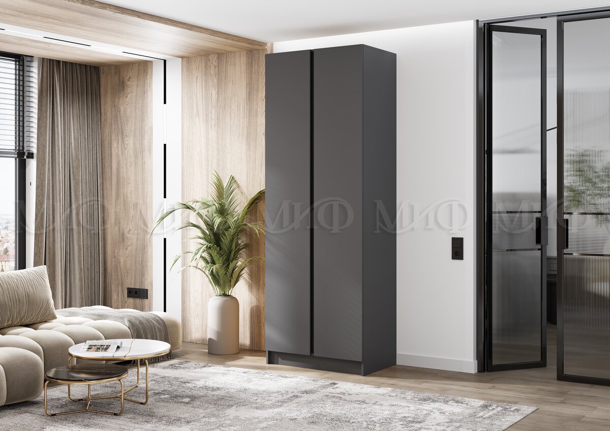 - Шкаф двухстворчатый Келвин (800) Графит-вставка черная