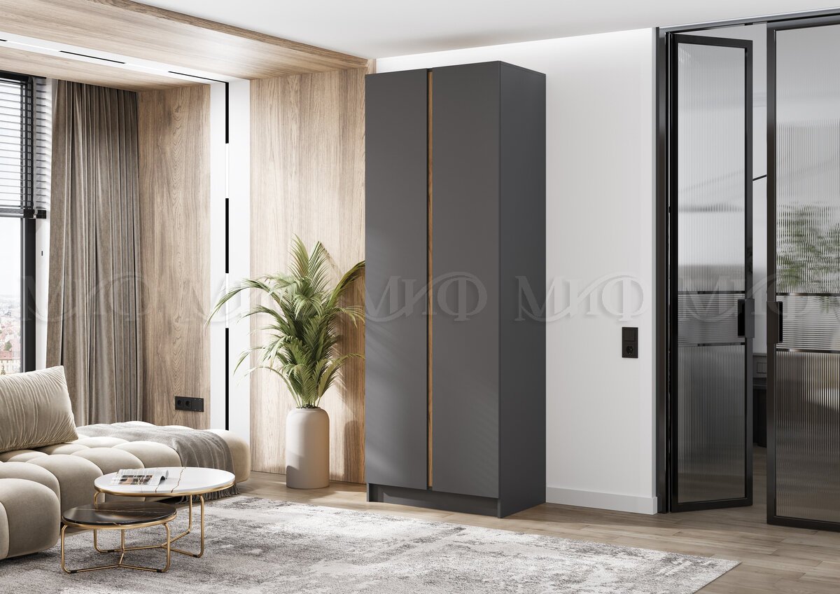 - Шкаф двухстворчатый Келвин (800) Графит-вставка дуб крафт