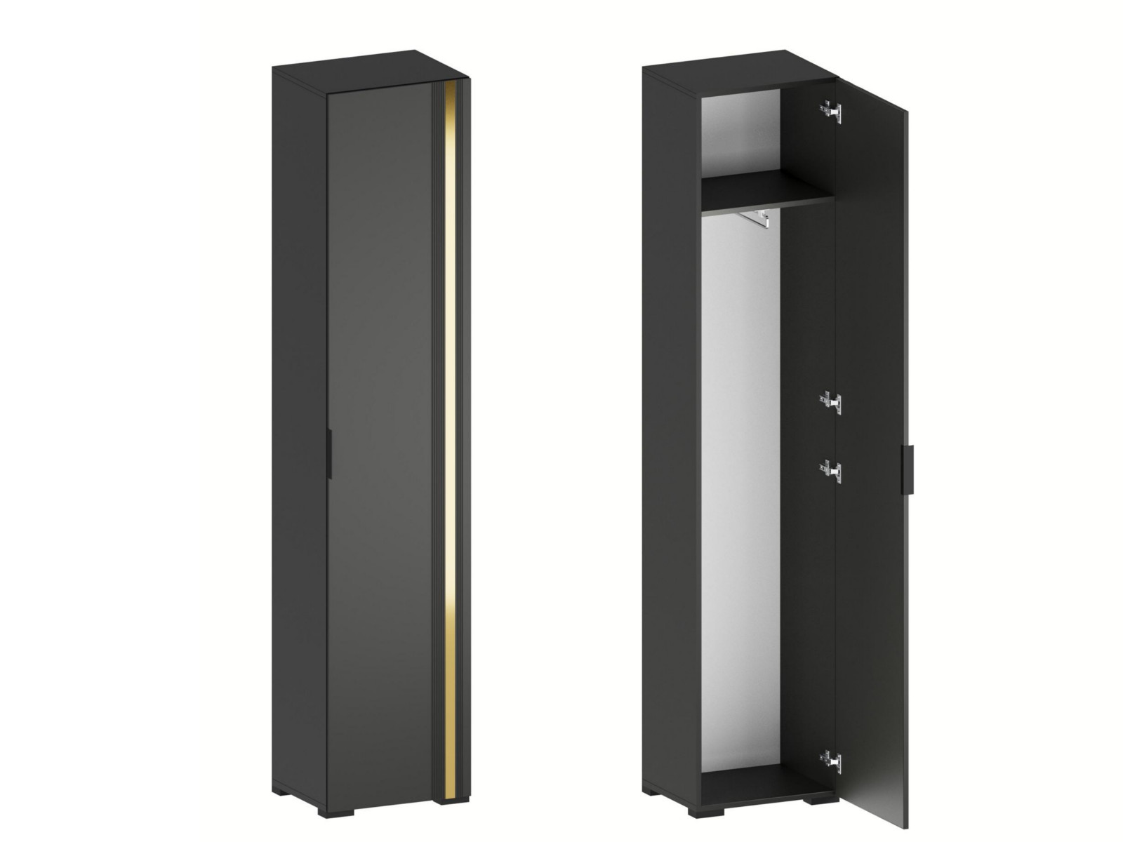- Фасады из МДФ с оригинальной фрезеровкой покрыты суперматовой пленкой с эффектом Soft Touch в цветах Графит и Milk.