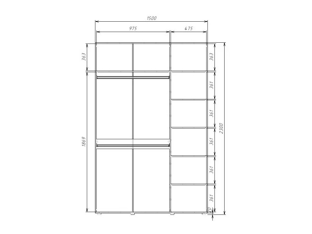 - Высота, мм: 2300