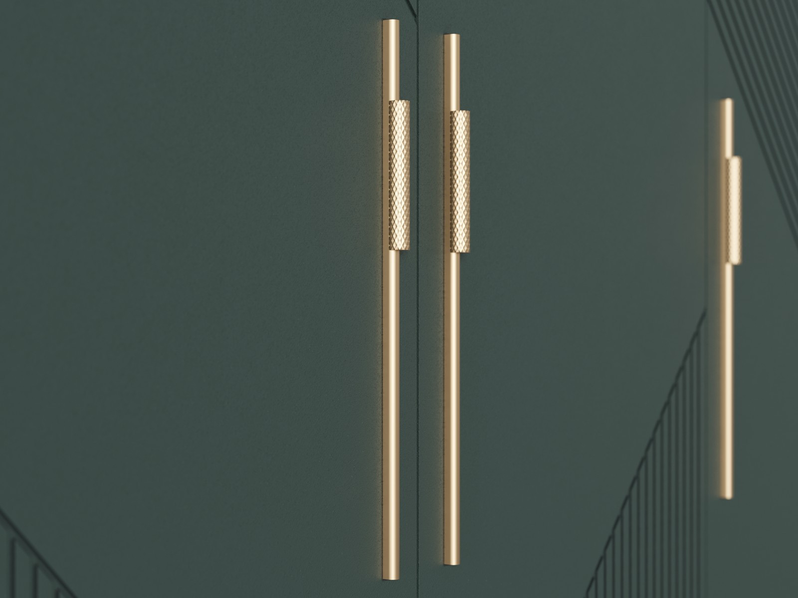 Две оставшиеся секции, габаритами Д.482хВ.2254хГ.490мм., расположены по бокам от центральной и идентичны друг другу. В низу и наверху имеются несъемные полки-вязки, пространство над и под которыми по 300мм. Между полками имеется пространство в 1622мм высотой и 490мм глубиной, в котором расположена овальная металлическая штанга на металлических штангодержателях для одежды. Штанга располагается на высоте 1957мм. от уровня пола, расстояние от штанги до нижней вязки – 1546мм