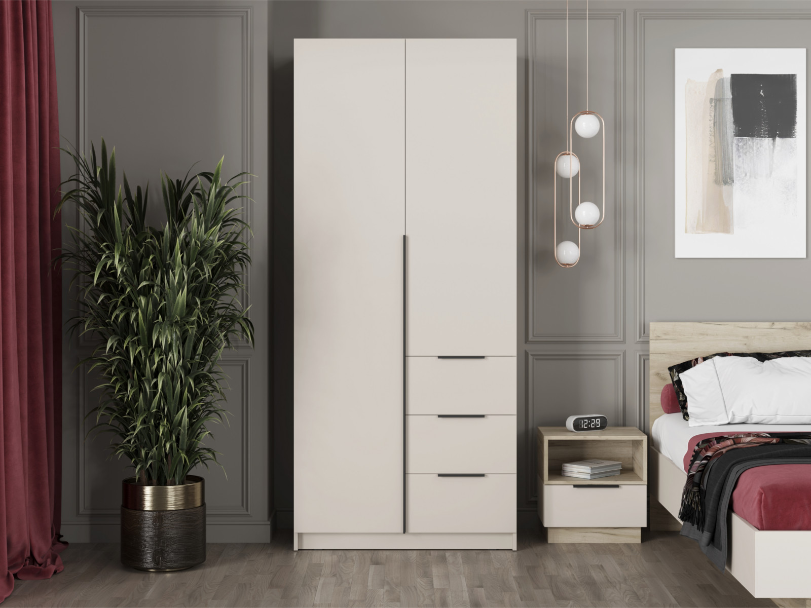Дно ящиков – ХДФ простое (без цвета) – полностью накладное(набивное). - Также шкаф имеет две створки, за которыми расположены: