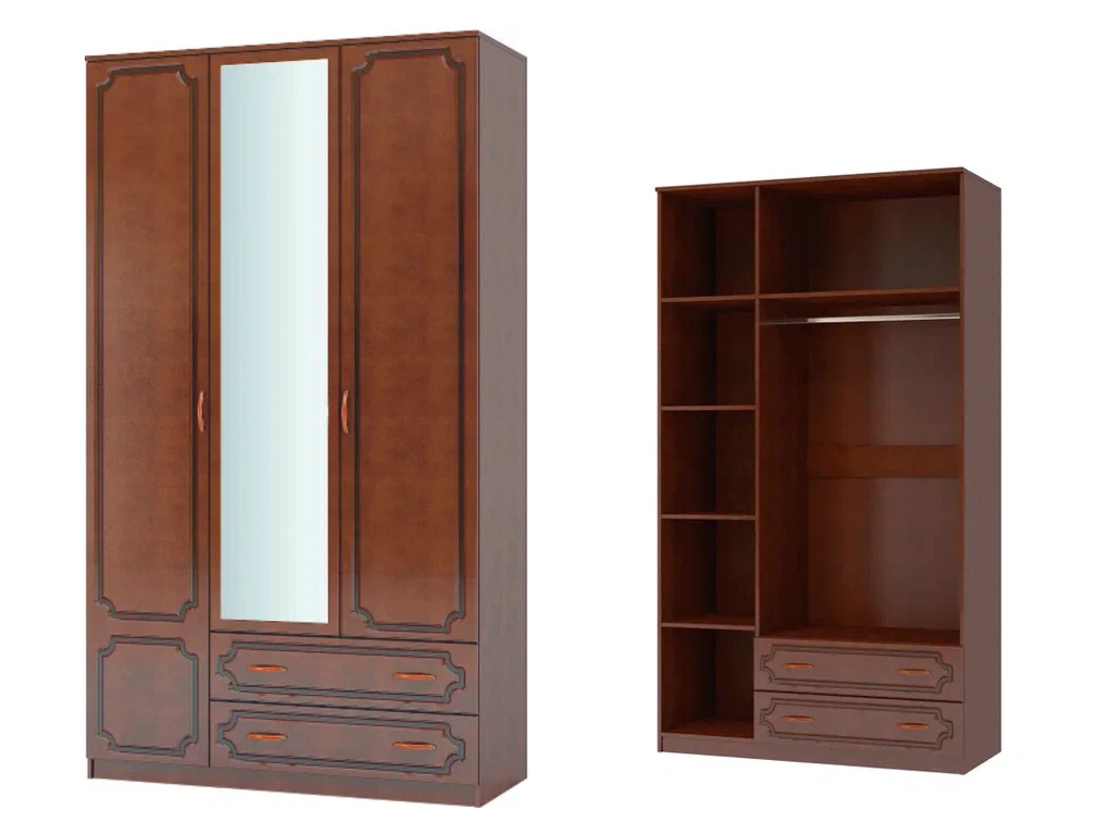 Шкаф ШР-3 платье и бельё с зеркалом Лак Орех