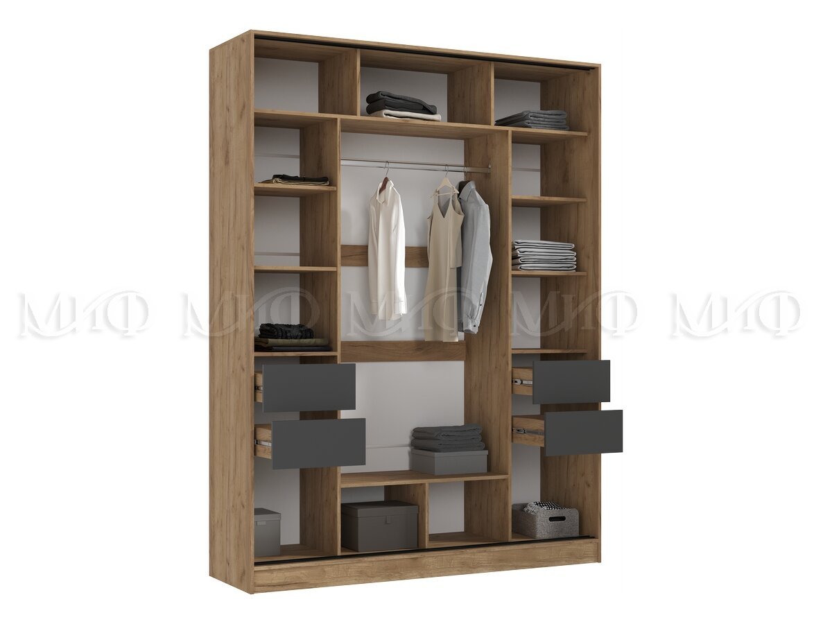 - Шкаф-купе 1800 Роджина Дуб крафт/Графит