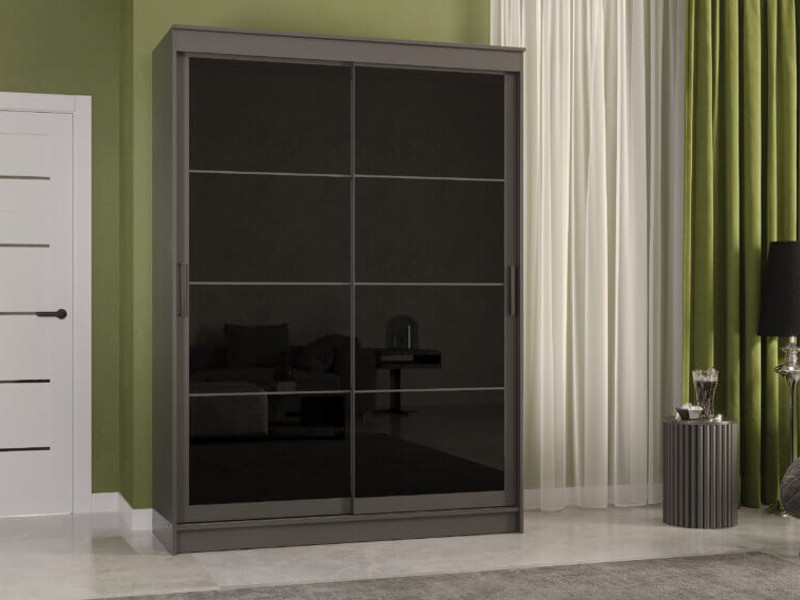 - Шкаф-купе Гранд-1 1600 Графит-двери Лакобель черный
