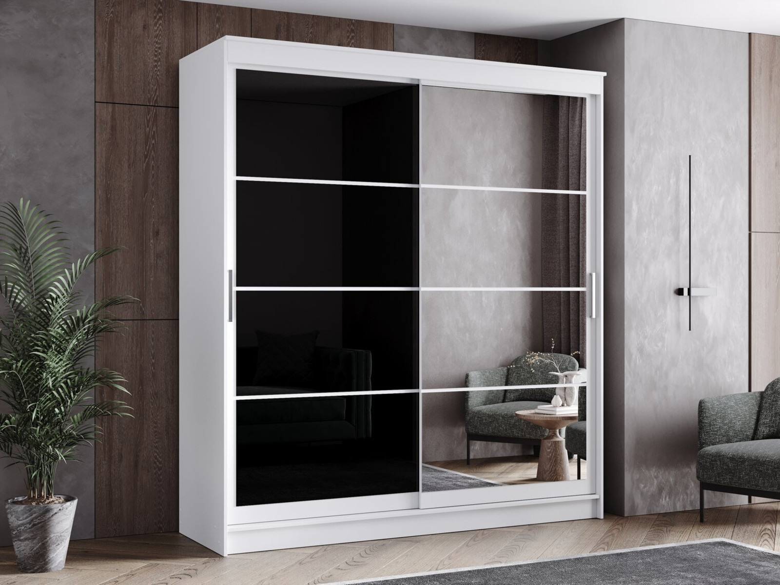 - Шкаф-купе Гранд-1 2000 Белый гладкий-двери Зеркало-Лакобель черный