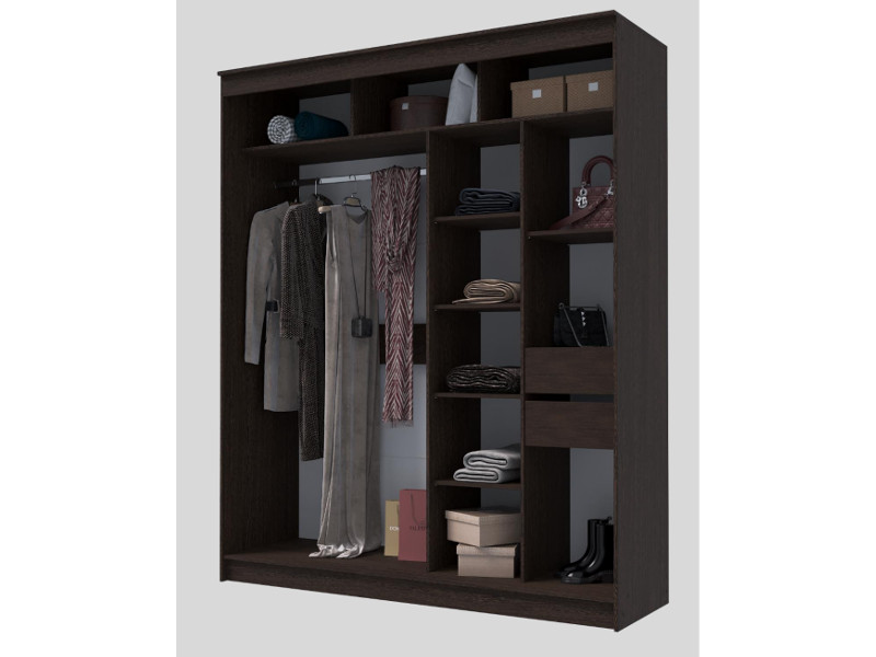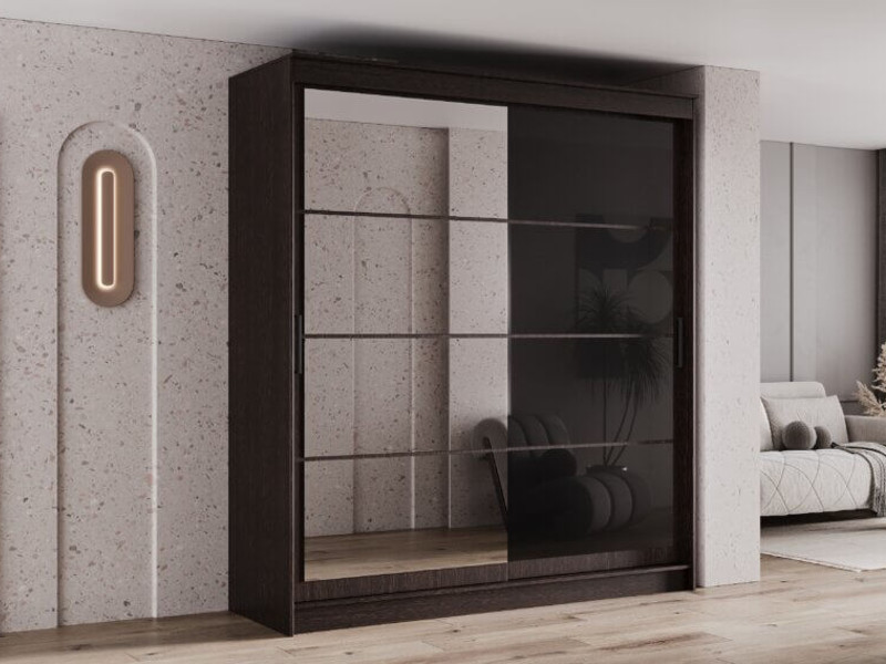 - Шкаф-купе Гранд-1 2000 Дуб Венге-двери Зеркало-Лакобель черный