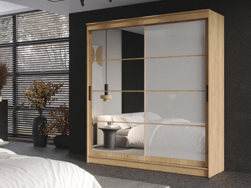 - Шкаф-купе Гранд-1 2000 Дуб Вотан-двери Зеркало-Лакобель белый