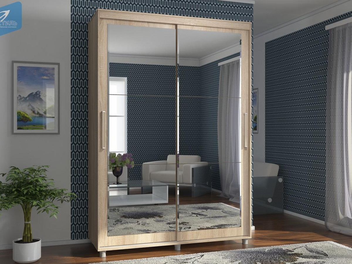 - Шкаф-купе Комфорт 12 Прайм c прямоугольным зеркалом 1500 сонома
