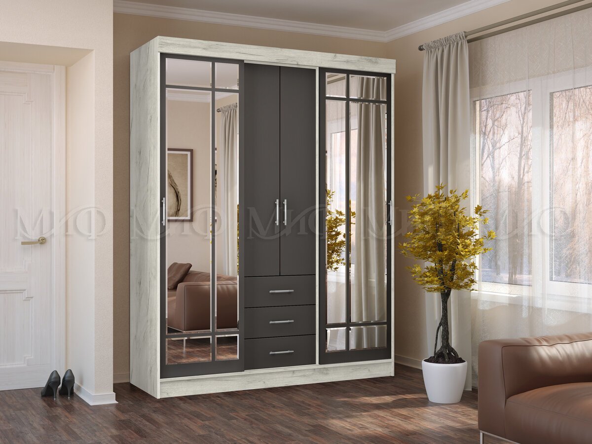- Шкаф-купе Маэстро Графит, Дуб Крафт Белый