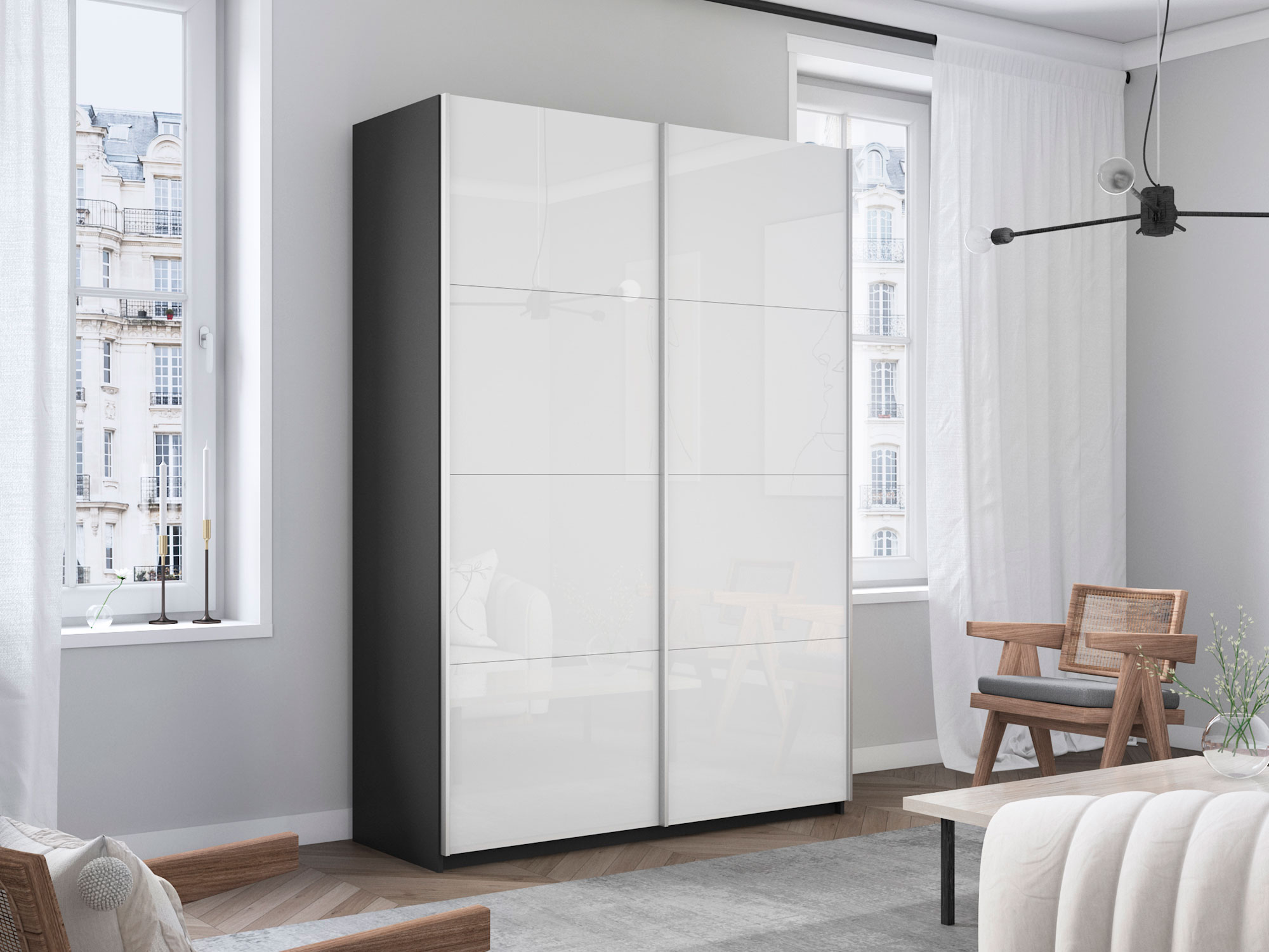 - Шкаф-купе Прайм 2-х дверный 1200 Стекло Белое Серый Диамант