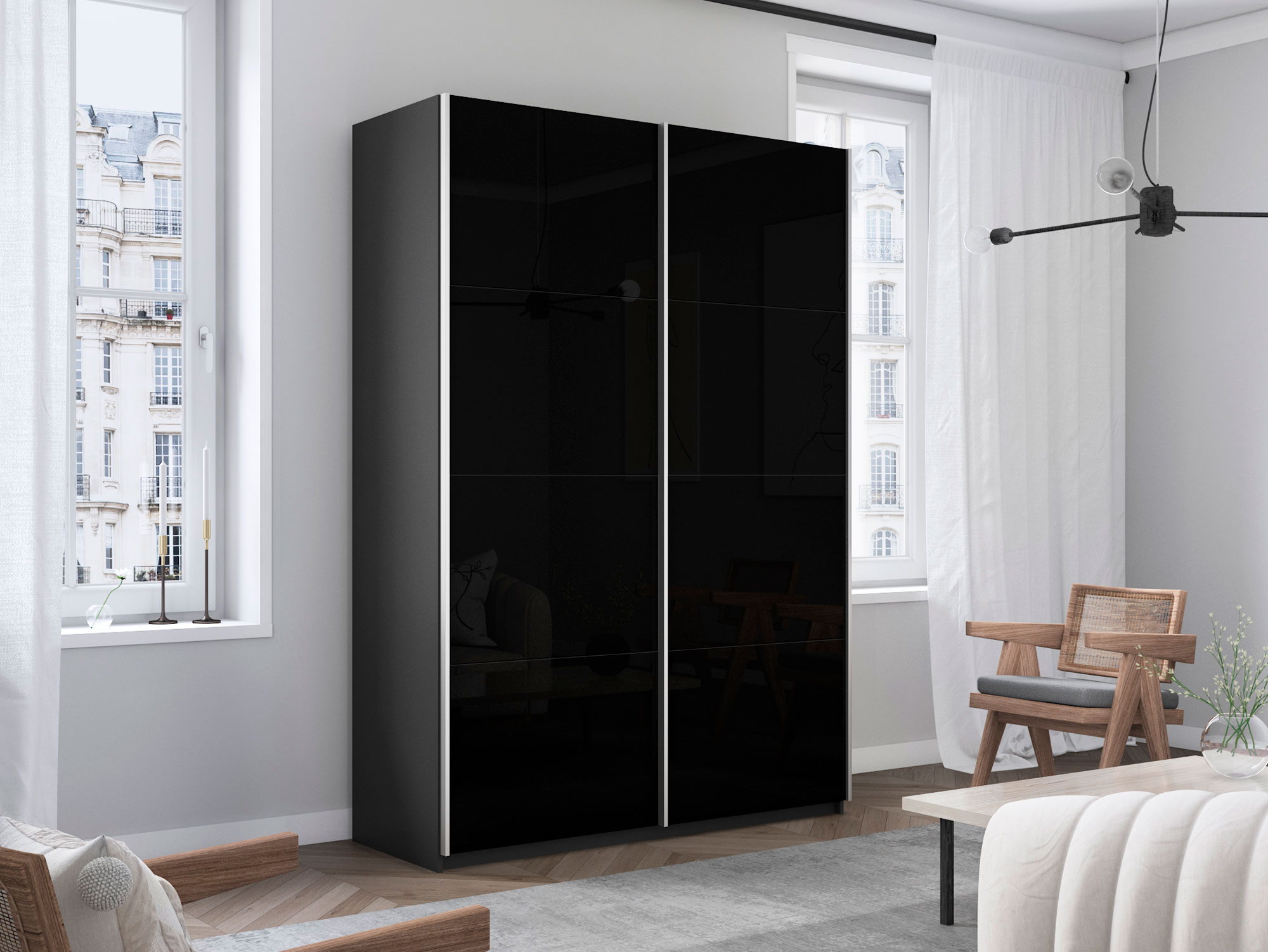 - Шкаф-купе Прайм 2-х дверный 1200 Стекло Черное Серый Диамант