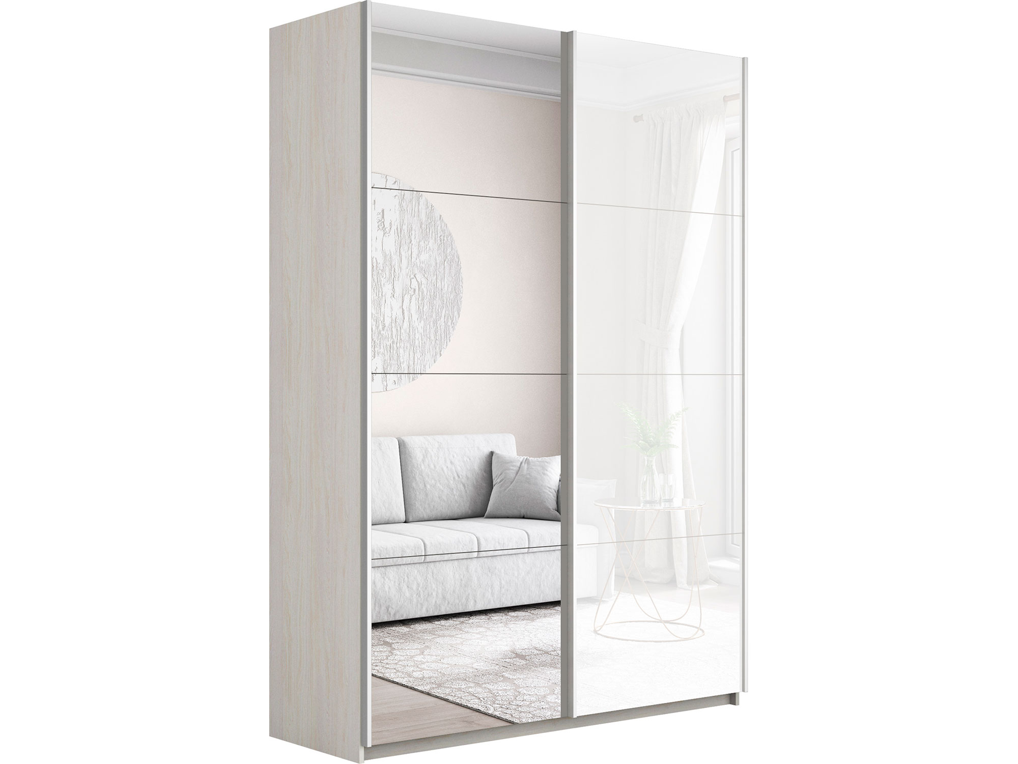 - Шкаф-купе Прайм 2-х дверный 1200 Зеркало/Стекло Белое Ясень Анкор Светлый