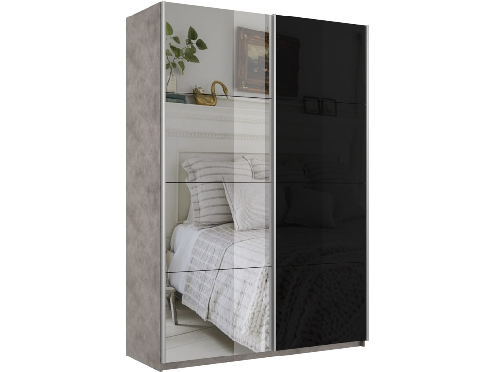 - Шкаф-купе Прайм 2-х дверный 1200 Зеркало/Стекло Черное Бетон