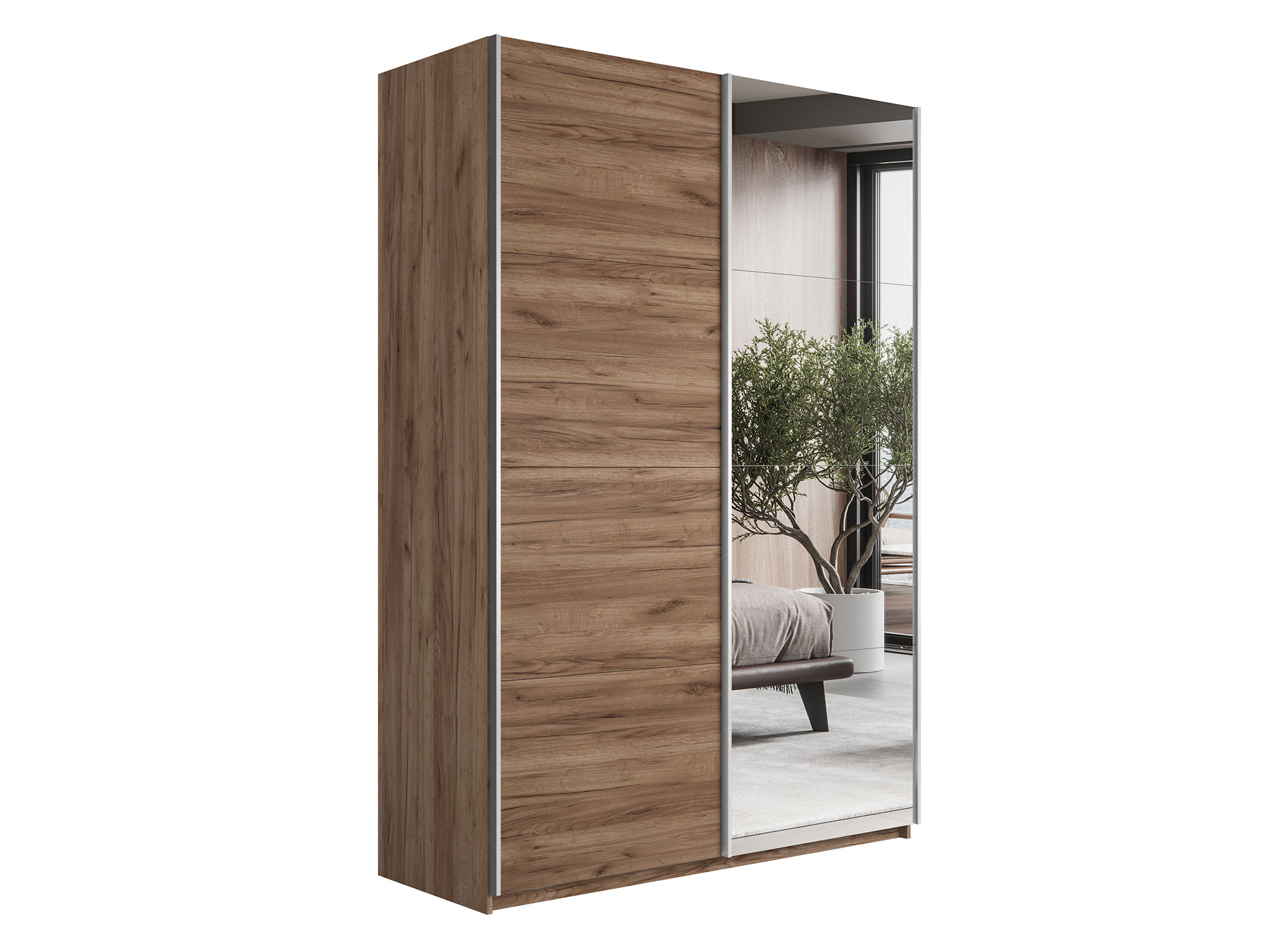 - Шкаф-купе Прайм 2-х дверный 1600 Зеркало/ДСП Крафт табачный