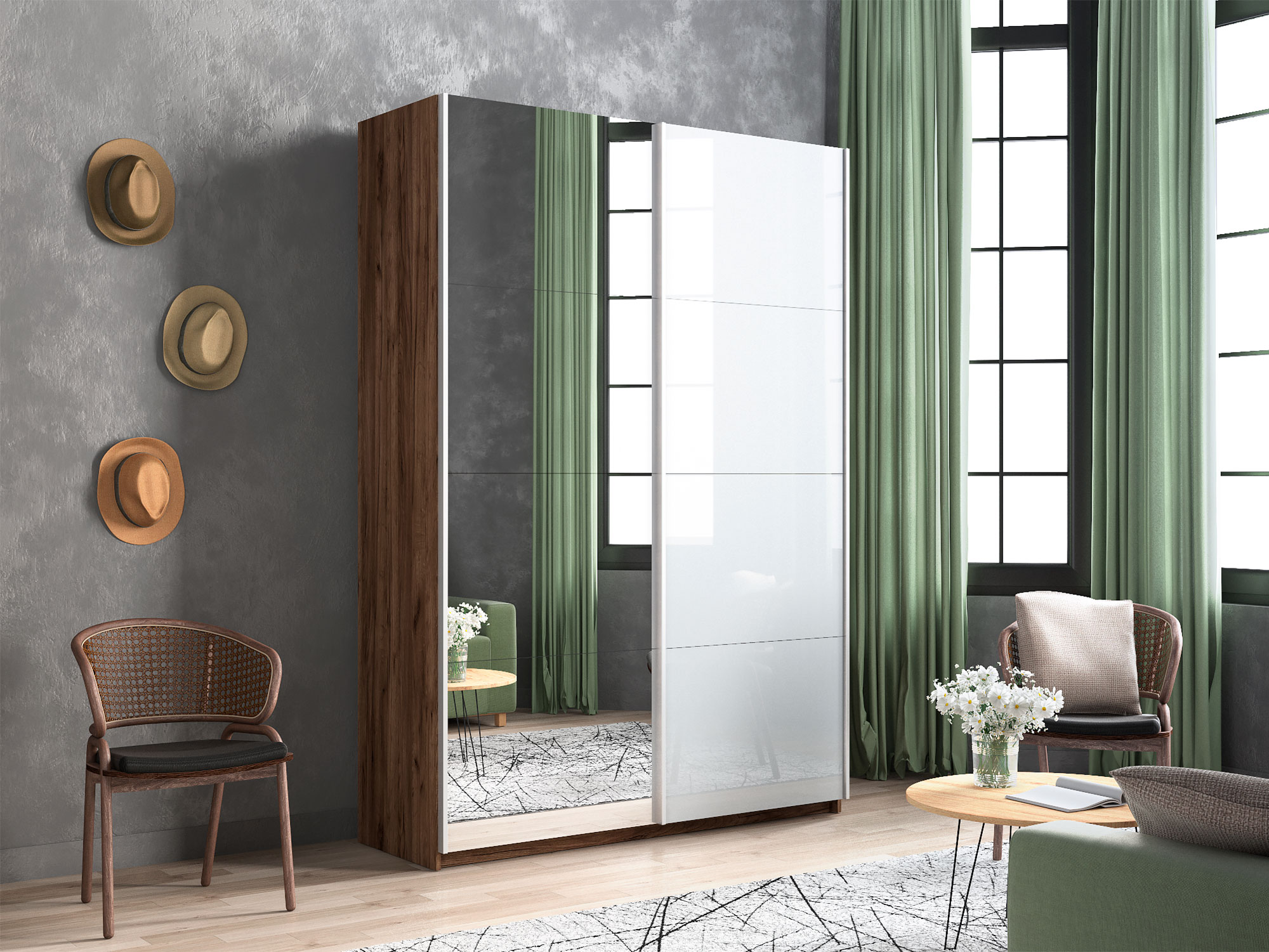 - Усиленная навесная система дверей помогает ходовому профилю выдерживать высокие нагрузки, а также сохраняет полезную площадь внутри шкафа, благодаря установке снаружи корпуса