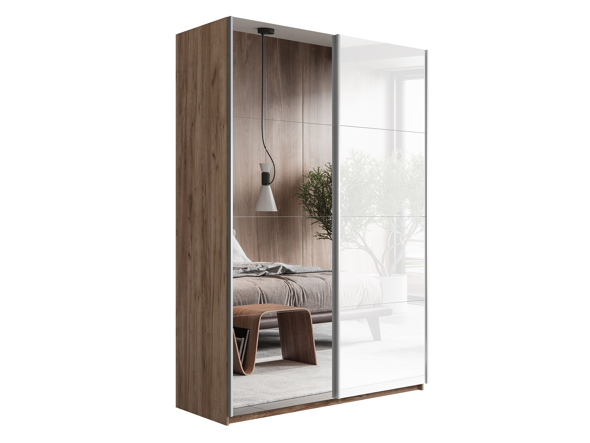 - Шкаф-купе Прайм 2-х дверный 1600 Зеркало/Стекло Белое Крафт табачный