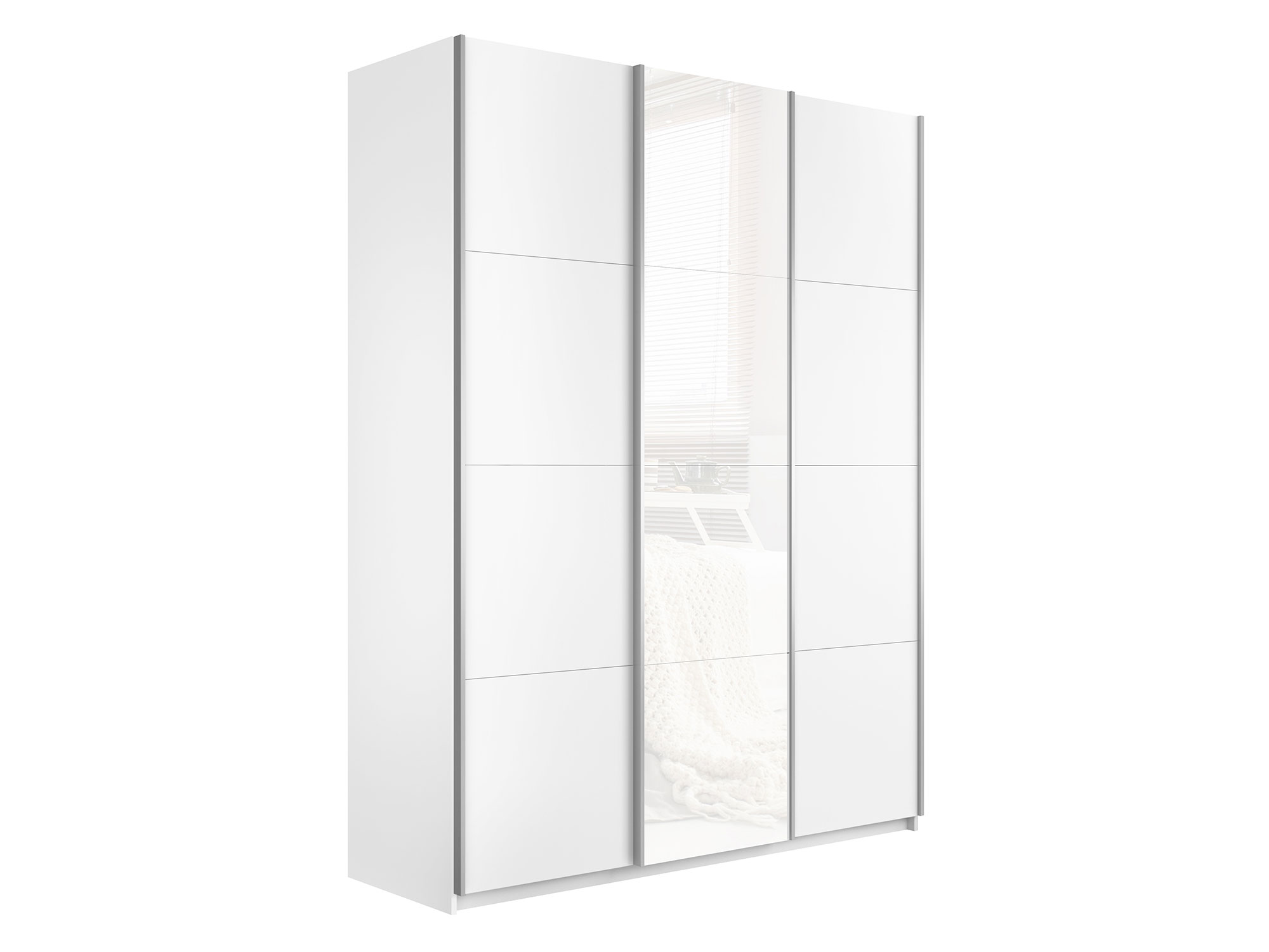 - Шкаф-купе Прайм 3-х дверный 1800 ДСП/Стекло Белое/ДСП Белый Снег