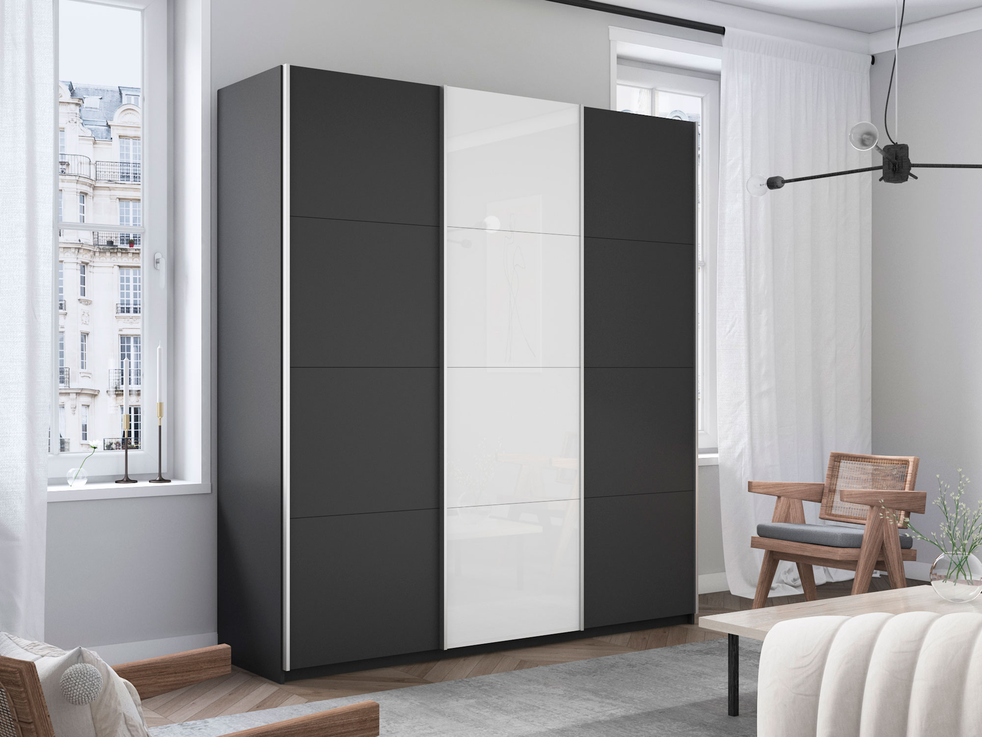 - Шкаф-купе Прайм 3-х дверный 1800 ДСП/Стекло Белое/ДСП Серый Диамант
