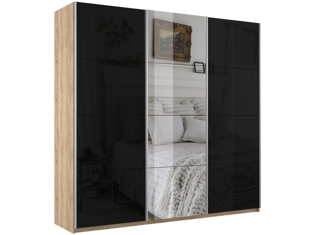 - Шкаф-купе Прайм 3-х дверный 1800 два Стекла Черные/Зеркало Сонома
