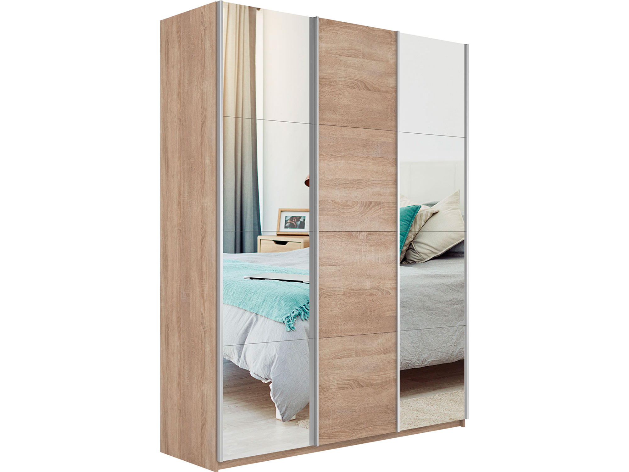- Шкаф-купе Прайм 3-х дверный 1800 два Зеркала/ДСП Сонома