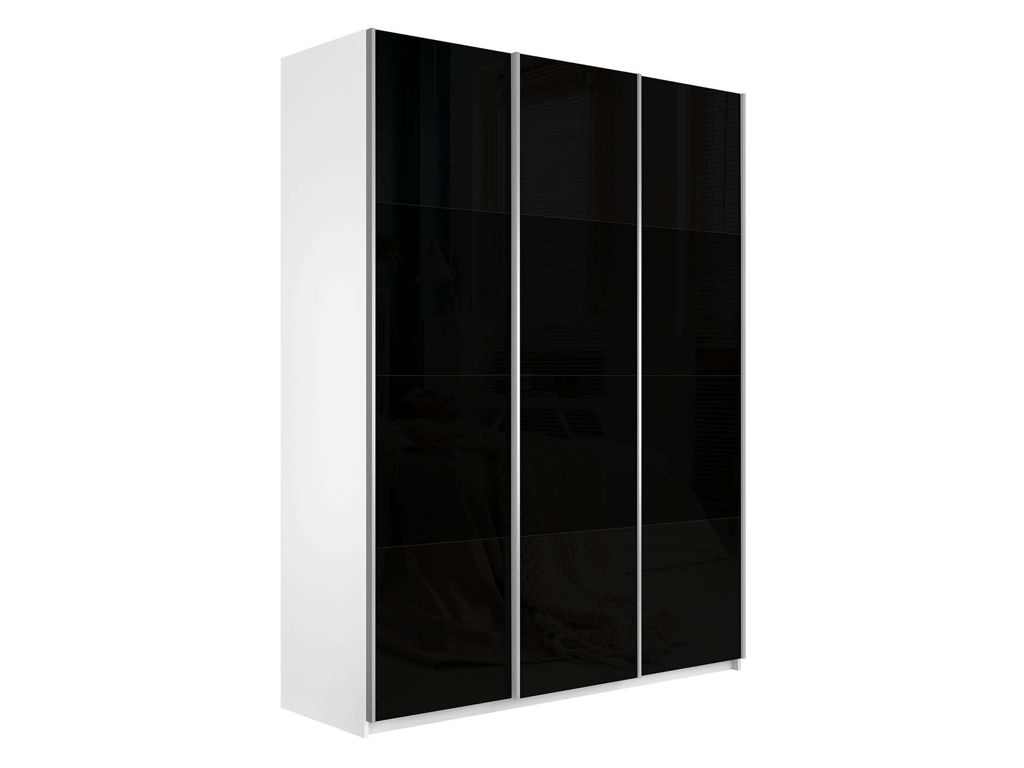 - Шкаф-купе Прайм 3-х дверный 1800 три стекла черные Белый Снег