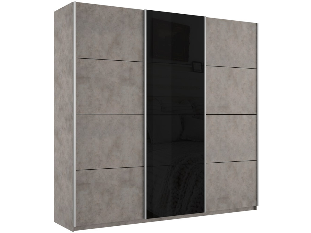 - Шкаф-купе Прайм 3-х дверный 2100 ДСП/Стекло Черное/ДСП Бетон