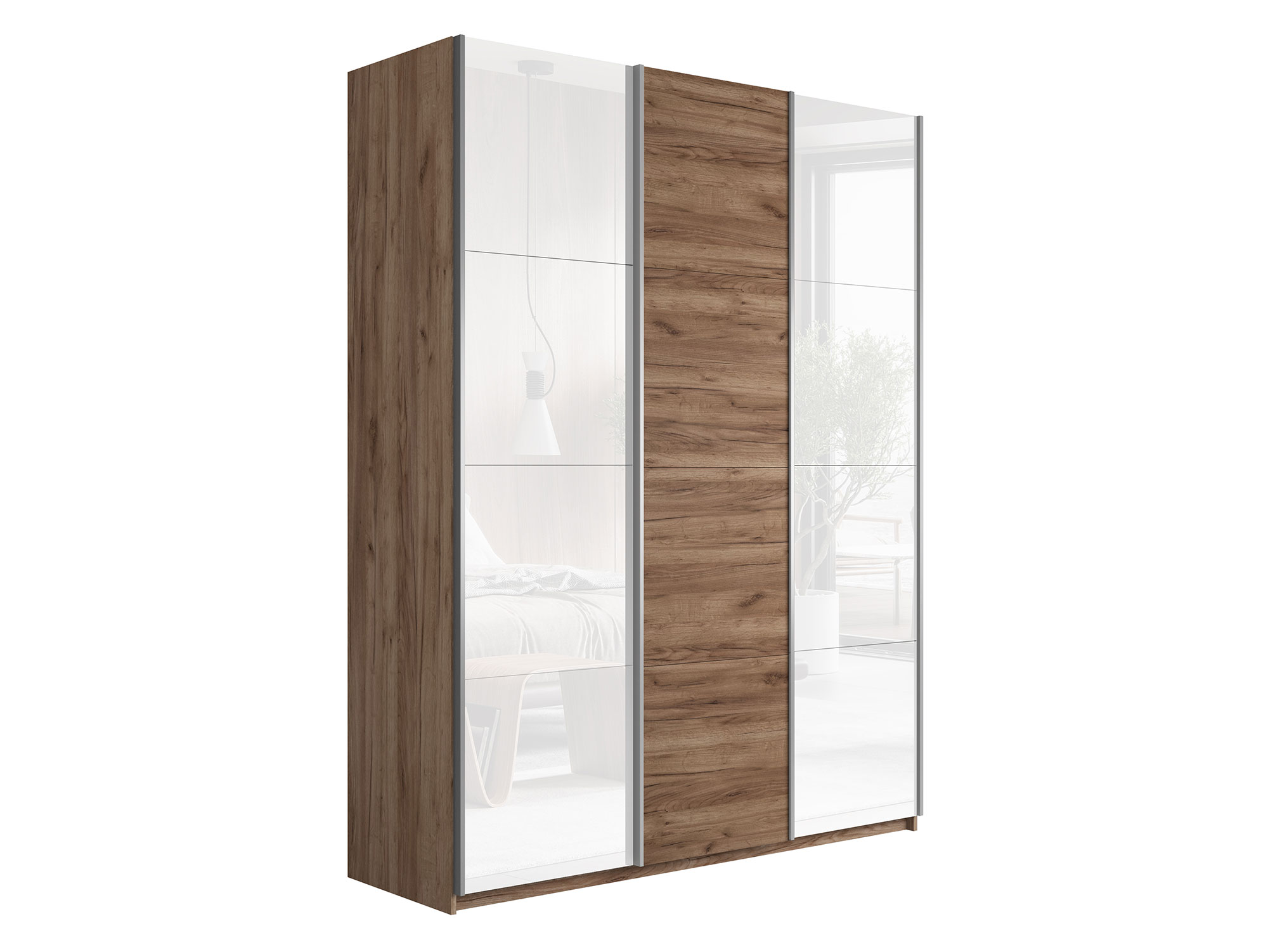 - Усиленная навесная система дверей помогает ходовому профилю выдерживать высокие нагрузки, а также сохраняет полезную площадь внутри шкафа, благодаря установке снаружи корпуса