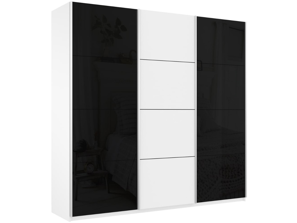- Шкаф-купе Прайм 3-х дверный 2100 два Стекла Черные/ДСП Белый Снег