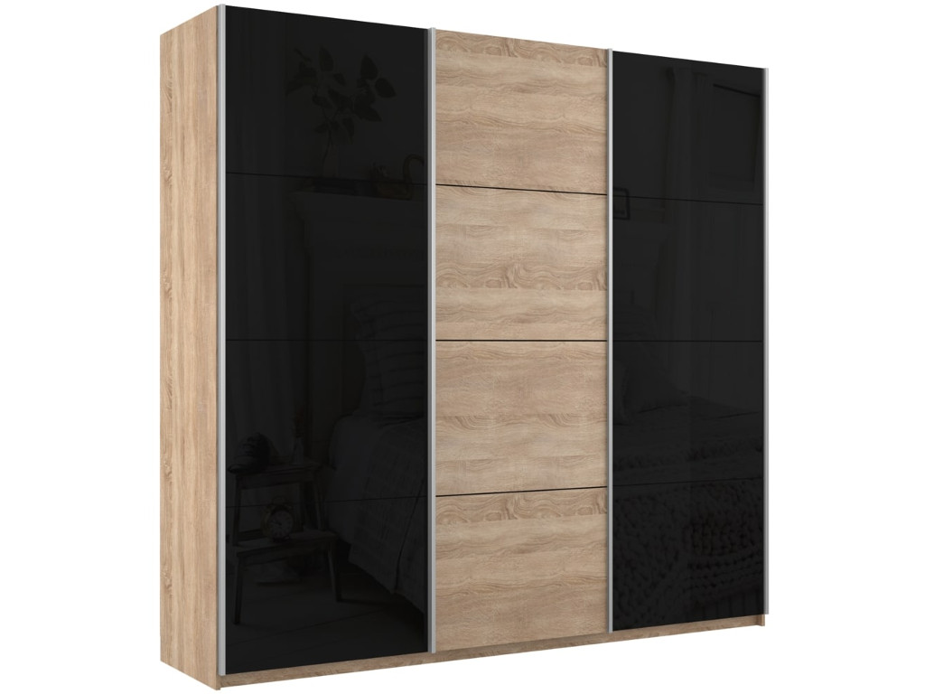 - Шкаф-купе Прайм 3-х дверный 2100 два Стекла Черные/ДСП Сонома