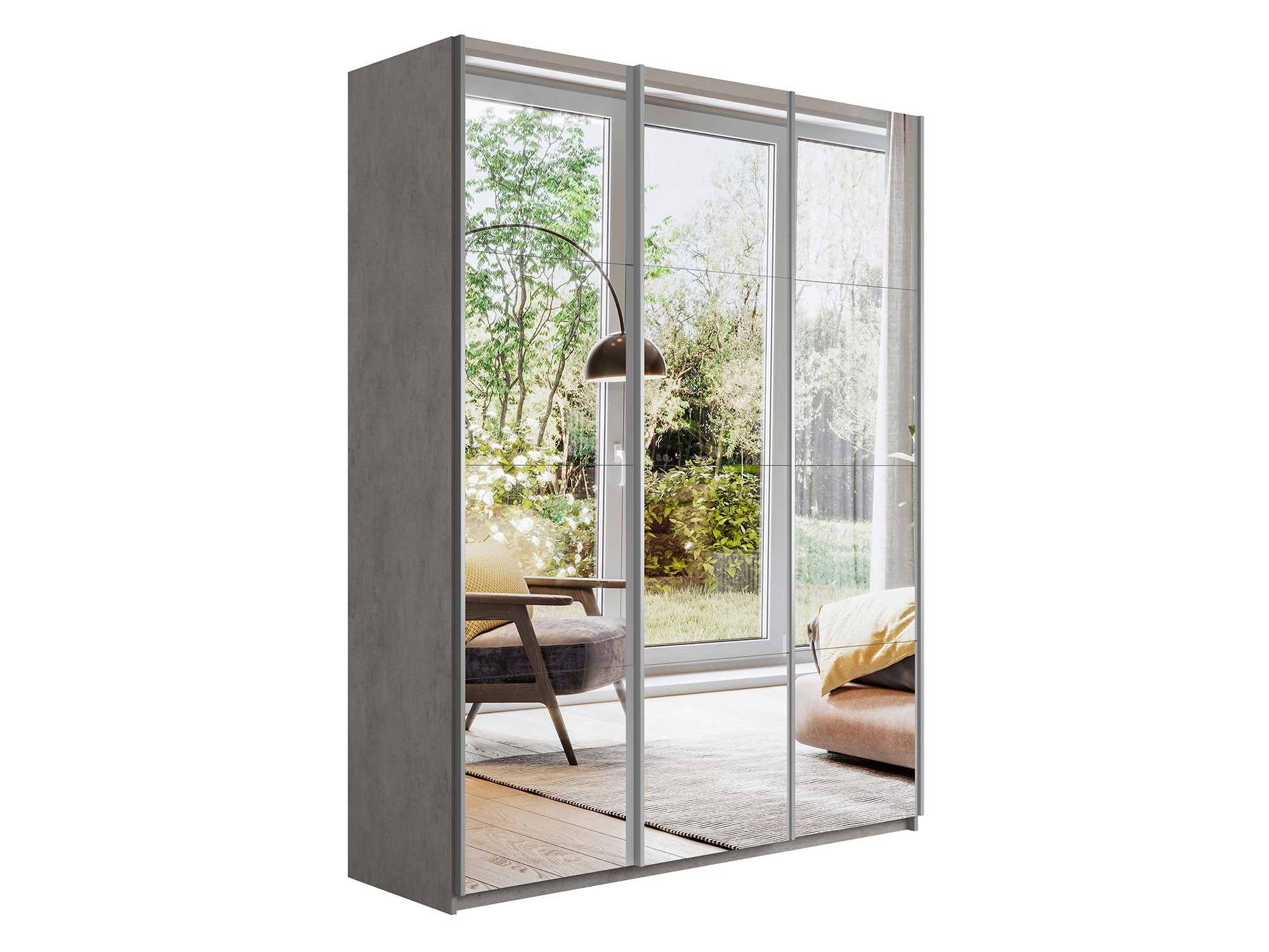 - Шкаф-купе Прайм 3-х дверный 2100 три зеркала Бетон