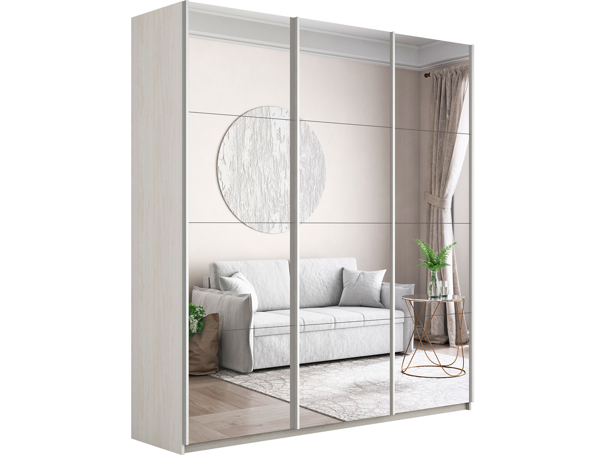 - Шкаф-купе Прайм 3-х дверный 2100 три зеркала Ясень Анкор Светлый