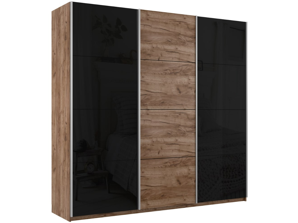 - Шкаф-купе Прайм Широкий 3-х дверный два черных стекла/ДСП Крафт табачный