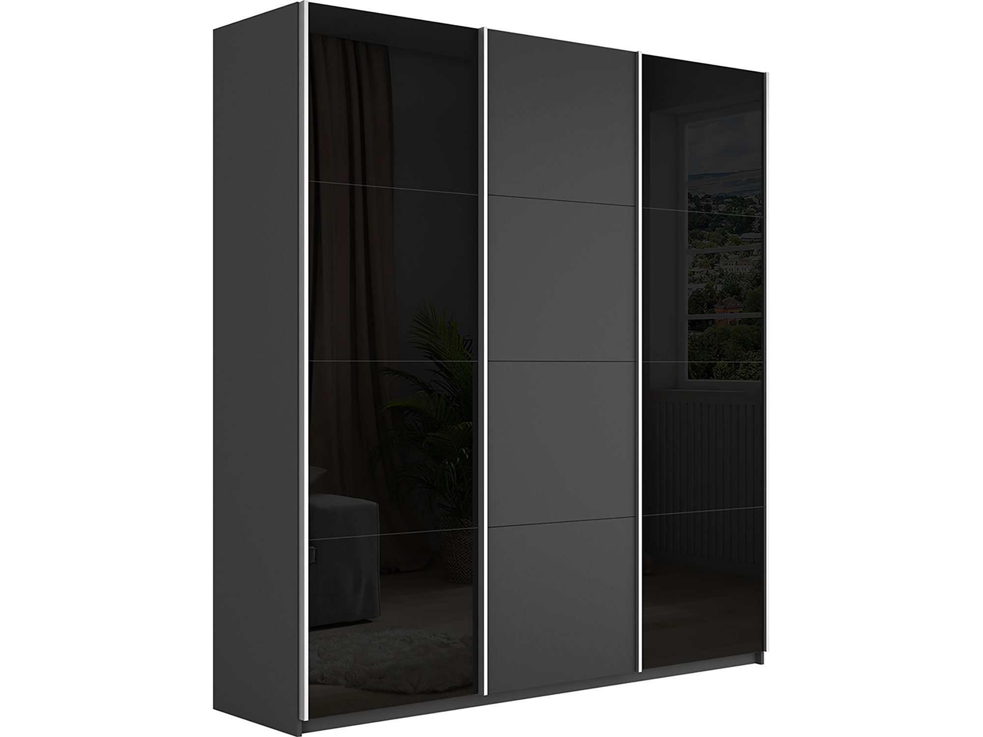 - Шкаф-купе Прайм Широкий 3-х дверный два черных стекла/ДСП Серый Диамант