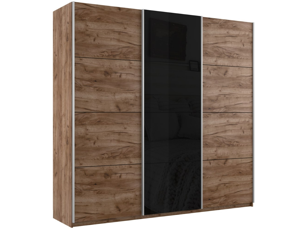 Шкаф-купе Прайм Широкий 3-х дверный два ДСП/Стекло Черное Крафт табачный