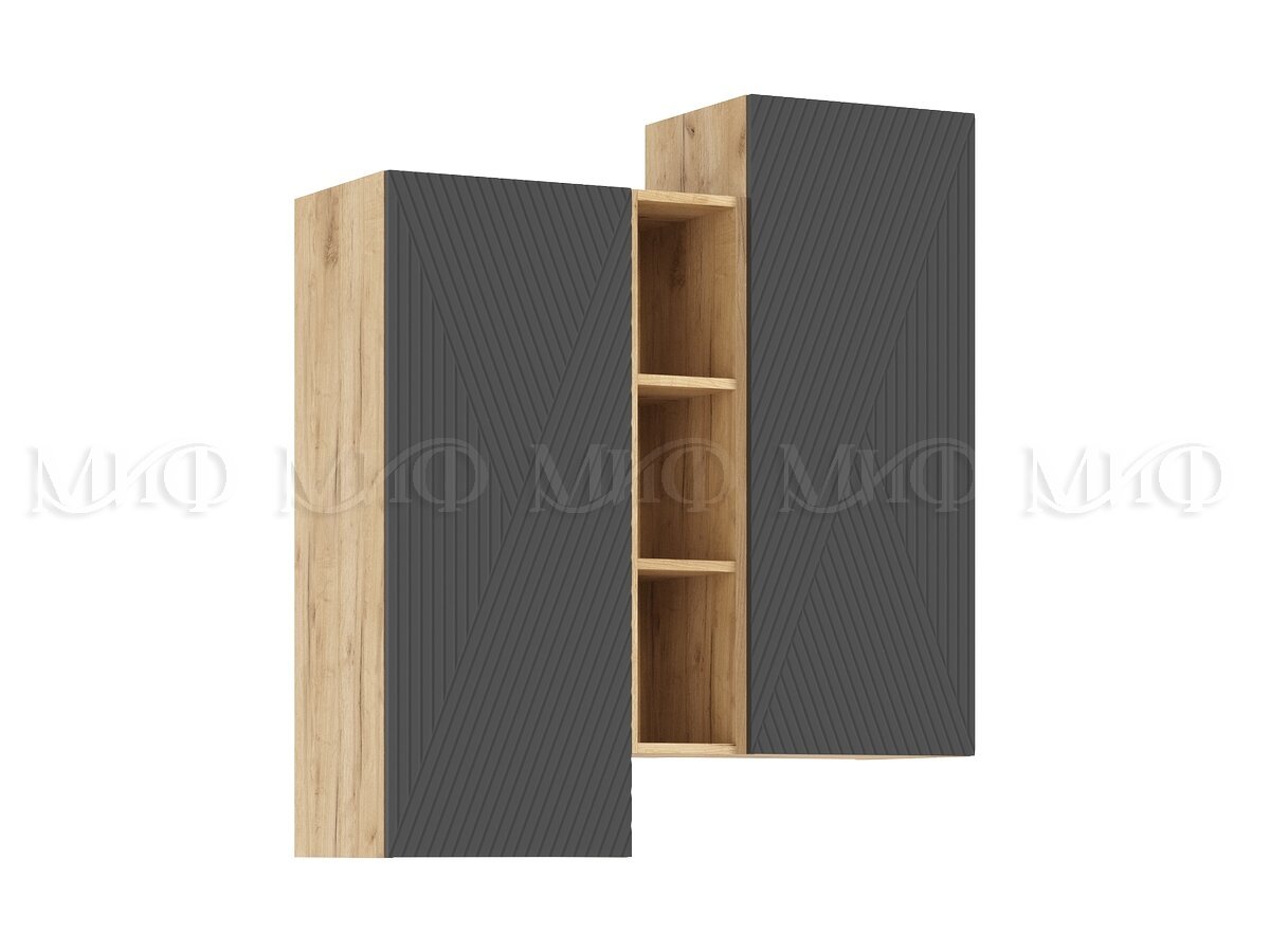 - Шкаф подвесной комбинированный Флэш Браш Графит, Дуб Крафт