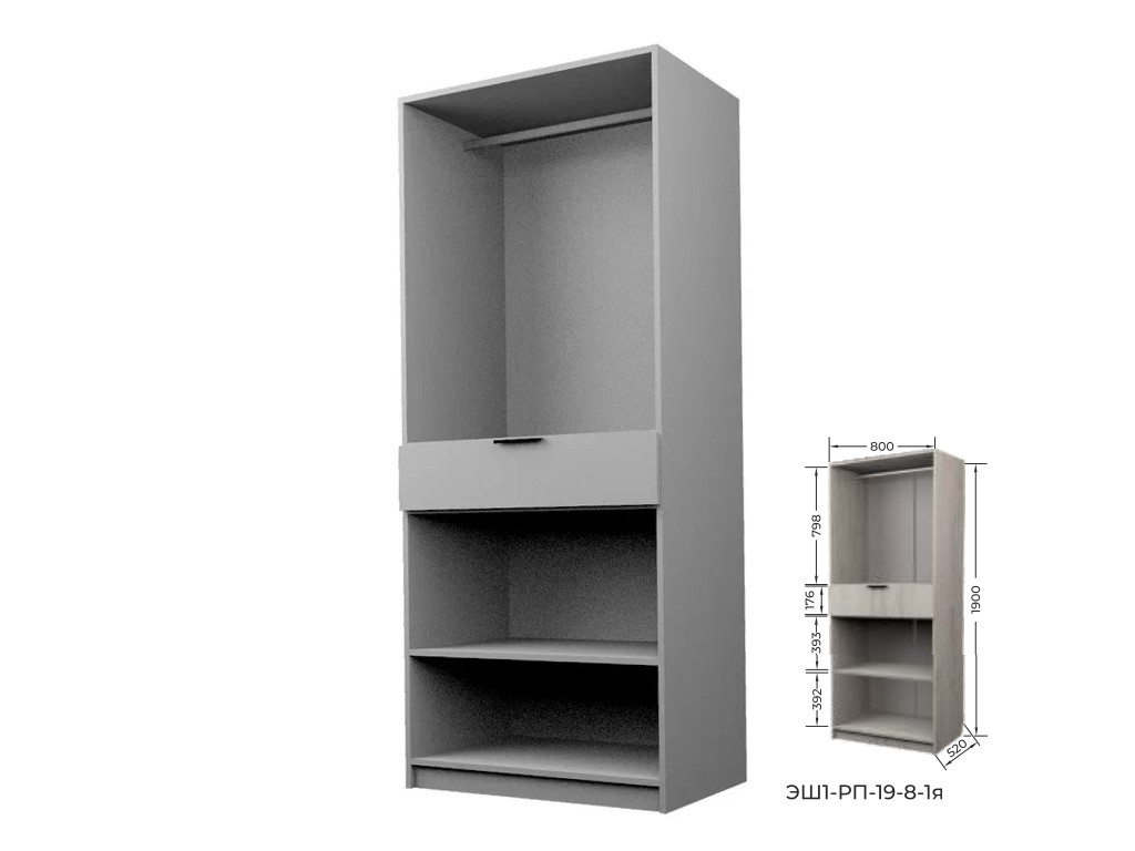Шкаф с 1 ящиком со штангой Экон ЭШ1-РП-19-8-1я с зеркалами